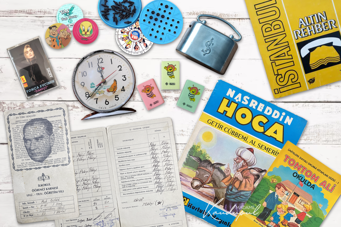 İlkokuldayken çok moda olan kokulu not kağıdı ve peçete koleksiyonlarımız vardı. Arkadaşlar arasında aynı olanları değiş tokuş yapar çeşitliliği arttırırdık. Özellikle kokulu not kağıtlarının kokusu halen daha burnumda. Yine kokusunu nerede duysam tanıyacağım meşhur silgilerimiz vardı. Kanserojen madde içerdiği için toplatılmıştı bir dönem. Divit hokkalarımız vardı ve güzel yazı dersinde büyük eziyetlerle güzel yazı yazmaya çalışırdık. Elimizin yüzümüzün mürekkep olduğu anları dün gibi hatırlıyorum. Buna rağmen eğlenirdik 🙂 Hiç unutmam Monami marka pastel boyalar vardı. Her çocuğun hayallerini süslerdi. O boyalara sahipsen maddi durumunun iyi olduğuna işaretti 🙂 Bunun gibi üst sınıf belirtisi olan kapaklı kalem kutuları da vardı.